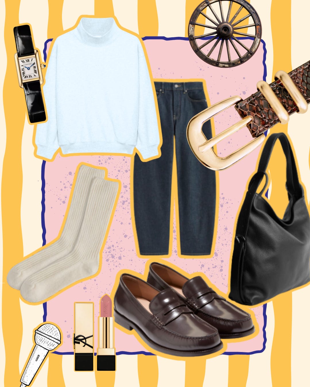 We never get to see what’s she wearing for bottoms. I’m guessing in the movie it was a matching skirt. Today, I think she’d wear a pair of travel-friendly jeans like these.