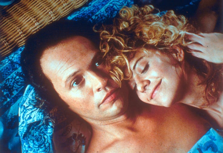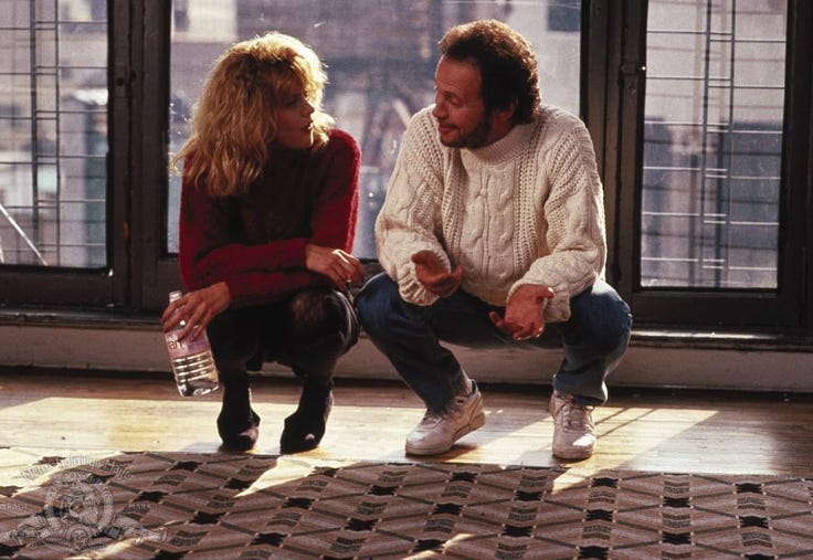 I was late to the WHMS… game. First and foremost, when it premiered in theaters in July 1989, I was only 3 weeks out from my very 1st birthday. Two, even though Pretty Woman was considered unobjectionable viewing for my toddler eyes, I’m guessing my mom thought the conversations in this one were a bit too mature for me. As we were staunchly a Meg Ryan household, I’m still surprised this one evaded me until college.4 Prior to the writing of this newsletter you’re reading, I’d only seen this movie a few times.